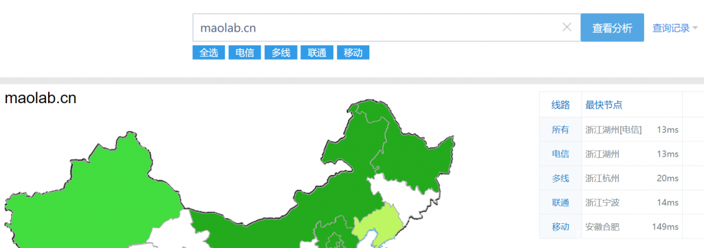 我使用了国内的阿里云服务器(杭州主线,应该是电信)。从欧洲访问国内节点。解析时间从230ms降低到20 ms左右,然而网站的访问速度并没有显著提高。应该还是资源配置的问题,以及个人博客的小文件影响了网站的整体访问速度。ps,本个人博客的网站还是以文字为主,且采用的独立虚拟主机。不知道采用ECS服务器是否会提高网站的访问速度。
